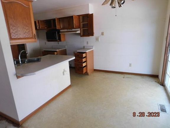Vinyl sided half duplex features 3 bedrooms, 2 bathrooms, living room, kitchen and 2 car attached garage.