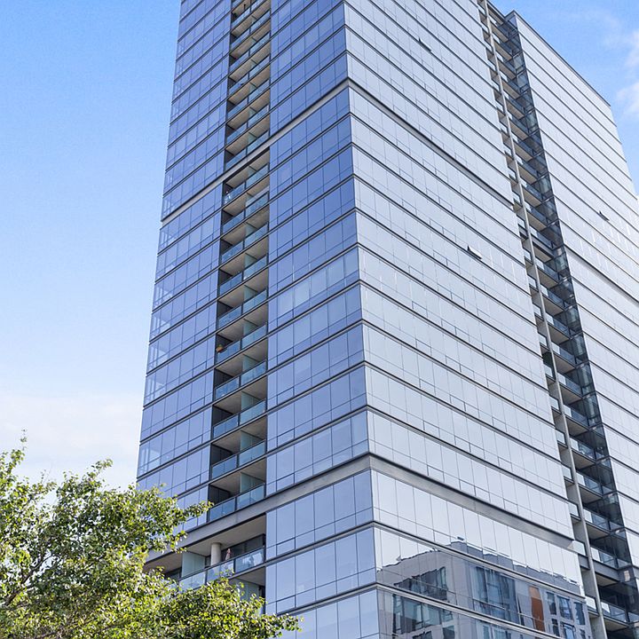 Sleek contemporary kitchenDramatic floor-to-ceiling windowsGenerous second bedroomHome officeSprawling private terraceExpansive primary suiteSpectacular city views