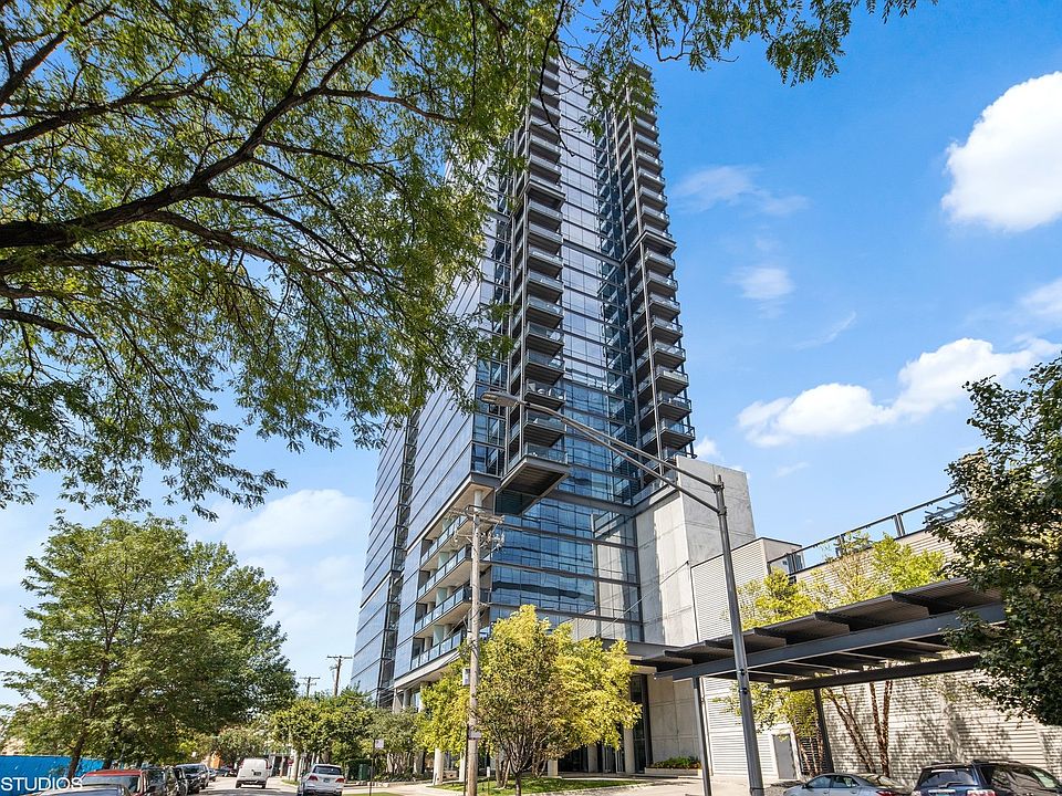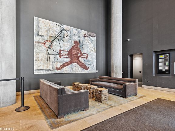 Spacious 1BR/1BA loft home at SoNo, a Booth-designed glass and steel tower. This 796 square foot unit boasts West views from floor to ceiling 10ft. windows. As for the living space itself, you'll find a functional home with spacious open layout including a huge 18x7 foot terrace with West & South sun. There is modern kitchen with stainless appliances and granite counters. Primary bedroom is open with (2) closets and spacious bathroom with double vanity and white marble counters and shower surround. Great nook in hallway perfect for a small desk/work station. Nice stackable washer/dryer off kitchen. Just steps to Whole Foods, North/Clybourn CTA red line stop and tons of retail & dining options. Full amenity, 24 hour doorman building also hosts a fitness center, bike room. Outdoor garage spot #246 and storage locker #4 included in the price. Assessments include heat, AC, cable, and internet.