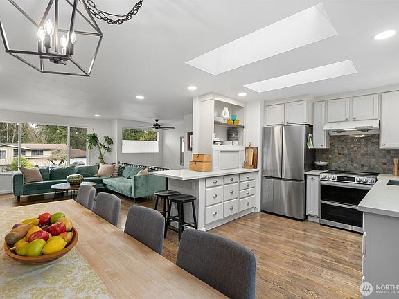An uncommon find in the heart of sought after Seaview! This well appointed home has everything you're after. A spacious corner lot offering cozy outdoor spaces that frame the heated, in-ground swimming pool and pool house. Seamless pathways from indoor to outdoor spaces as you entertain year-round . This property is the entertainer's dream. Spacious quarter-acre+ is an absolute oasis! Over 2 dozen significant upgrades from solar panels, EV charger, RV parking w/ sewer dump, heated floors, heat pump w/ central A/C, furnace, gas fireplaces, insulated pool house w/ electricity, hot/cold hose bib & more! Primary suite w/ walk-in closet and private bath. 2 beds up with 3 beds down. Large family room downstairs accommodates a baby grand piano.