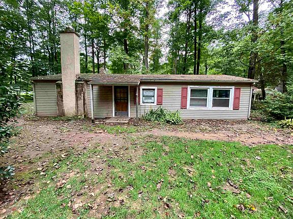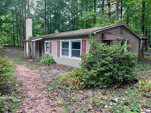 Home is on a partially wooded 1.1 acre lot, in a park like setting, that joins the National Forest. Home does need TLC, but has potential as a camp or short term rental. Property SOLD AS IS. Property has a hand dug well and cistern and septic. Owner/Agent