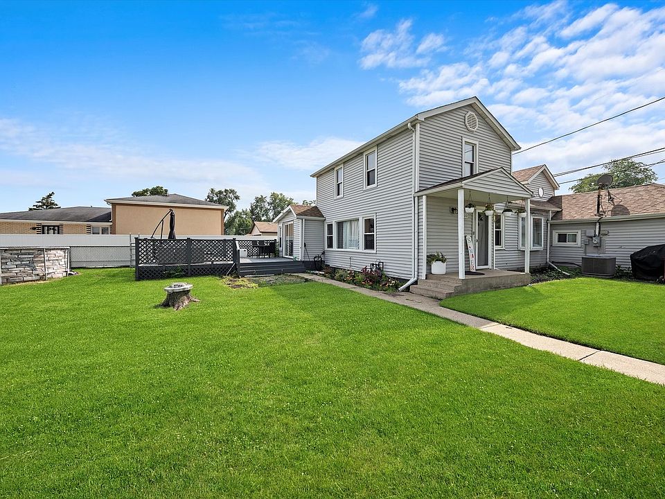 Check out the room sizes on this spacious 2 story. You will love to entertain in the large living room.Nice eat in kitchen area with stainless appliances. There is a full bath and laundry on the main level. Three large bedrooms on the upper level. The master bedroom is huge with a walk in closet. Great big back yard that is fenced and has a nice deck. . Home being sold as is. Excellent buy!!