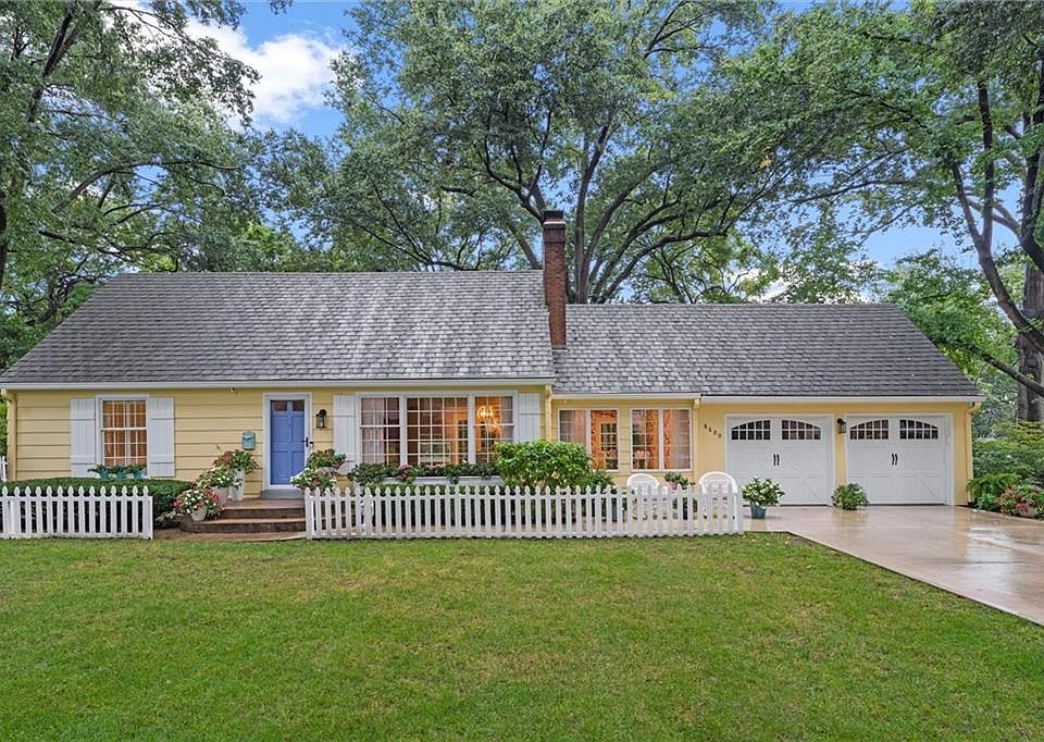 Nestled in the heart of Old Leawood, this beautifully updated 3 bed, 2 bath home is MOVE-IN READY and full of charm. TWO BDRM ON THE MAIN LEVEL AND ONE LARGE BDRM UPSTAIRS. The house is full of freshly renovated rooms with luxurious finishes, newer fixtures, paint, wallpaper AND an updated SPECTACULAR main floor bathroom. The updates combined w/hardwood flooring & classic architectural details provide modern touches to a timeless classic home. BRIGHT and INVITING, expansive wall of windows throughout the house provide light filled & sun drenched rooms at every turn. The stylish kitchen features sleek quartz countertops, stainless steel appliances, & gas cooktop - perfect for prepping your meals. The massive dining room provides a space for friends & family dinners and fun game nights. The fabulous family room with built-ins or the adjacent EXTRA ROOM offers warm inviting spaces to binge watch your favorite tv shows or find a quiet spot to read a book. Two bdrms on the first floor and a generous bdrm on the second floor -w/private bath & walk-in closet w/room to expand. Use it as a primary or put in a set of beds for the kids! Enjoy fabulous landscaping, custom window boxes for blooming flowers, picket fences, a garden arch, mature trees and so much more that fill the enormous fenced lot. Sprinkler system and Gutter Guards too! Room to add a pool, pickleball court or sports court if you want! Besides several separate garden areas, there also is a tremendous spacious deck perfect for entertaining. The two-car garage has an upper custom storage area with stairs leading to it. The newly finished oversized concrete driveway extends into a charming patio - an inviting spot to sit back and enjoy peaceful evenings and the beauty of the neighborhood. Don't miss your chance to own this impeccable well maintained ONE-OF-A KIND home - it's the perfect blend of charm, comfort and style!