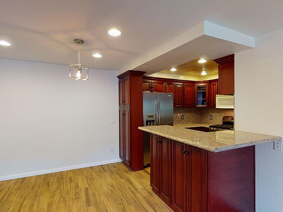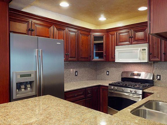 Elegant 2Bed/2Bath, 1143sf condo at the Villas del Rey complex. Main living and dining room separate two bed/bath areas. Spacious patio off living and bedroom is surrounded by trees and faces West with evening light. This is an end unit with only one connection wall. Kitchen eat-at bar, fireplace, central heat/air, 2 walk in closets. Tile and wood flooring throughout. Guest room built-in furniture is optional. Pet cat is okay. Extra storage offered. Refrigerator, washer, dryer are included without warranty or maintenance. Complex is rich with lush landscaping and amenities (pool, spas, tennis courts, sauna, fitness room, guest parking, extra storage.) Less than half a mile to the beach and Playa del Rey shops and restaurants. Two-car, tandem parking. Cat okay.