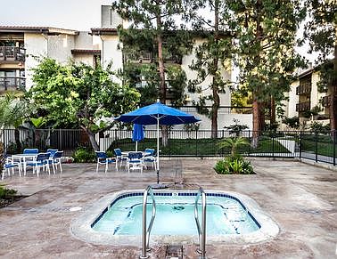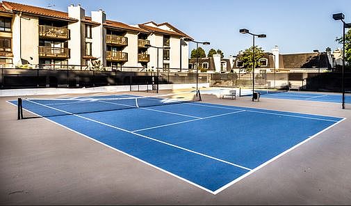 Enjoy resort style living in this 1 bedroom, 1.5 bathroom unit with a massive wrap-around patio with tennis court views at Villas Del Rey. The open layout offers hardwood floors, updated gourmet style kitchen, and a spacious bedroom with completely remodeled en-suite bathroom. Unit also includes in-unit washer & dryer, 2 parking spaces, & storage unit. Villas del Rey features one swimming pool, two spas, two saunas, tennis courts, fitness room, ample guest parking, security guard from 6pm-5/6am, and clubhouse with a kitchen which can be used for events, ... all less than 1/2 mile to the beach.
