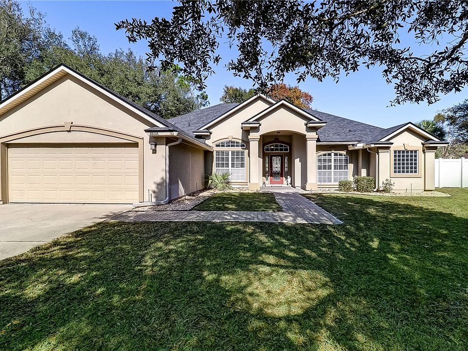 Lovely 1 level home with 4-bedrooms, 3 full baths, Foyer, Living Room; Separate Dining Area; Separate Family Room w/Fireplace; Kitchen offers 42" cabinets w/island, breakfast bar & breakfast area. Fenced backyard, screened lanai and is in a cul-de-sac. Six driveway parking spaces in addition to 2 car garage. Separate laundry room. Outstanding designer recommended interior paint throughout. New Roof installed April 2022. Owner’s bedroom is on East end of home with 2 walk in closets, tray ceiling w/upgraded ceiling fan & crown molding; ensuite bath & separate vanities, private water closet, separate shower & jacuzzi tub with the bedroom exit to lanai & back yard. 4th bedroom can be used as office w/full bath adjacent which also opens to lanai & backyard. 3 of 4 bedrooms offer walk-in closets. This home offers the wow factor as well as functionality & utility. Includes sprinkler system, whole house sound system & high ceilings. Come visit. Minutes from Shopping, Dining and Beaches.