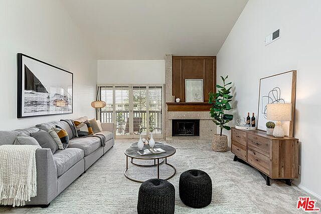 Grab your clients + come this weekend to see this tastefully refreshed Two Bedroom, Plus Den unit in Villas del Rey. Located on the top floor, this unit is on a corner w/only one common wall, and w/the extra window the corner location provides. Dramatic high ceilings, skylight window, + South and West-facing sliding doors and windows bring in amazing light! The kitchen has creamy white tile, contemporary cabinets with custom hardware, and all new stainless steel appliances, + excellent recessed lighting. The open living/dining area w/fireplace + shuttered windows open to the south-facing balcony-perfect for sunny morning coffee! The cheerful master suite boasts two closets, balcony sliding door, + an adjacent bathroom with updated fixtures, cabinet hardware + bathtub + counter finishes, + shower door. The 2nd bedroom + the den/third bedroom are on the opposite side of the unit with a beautifully redone bathroom with quality fixtures and finishes in between. The laundry closet has new high-end stackable appliances. Enjoy a great "Work From Home" situation, within the privacy of the den...or third sleeping area as the need arises. Villas del Rey has a strong, well-managed Homeowners Association and offers tennis courts, exercise room, pool/spa and club house and.....close to the bike path.