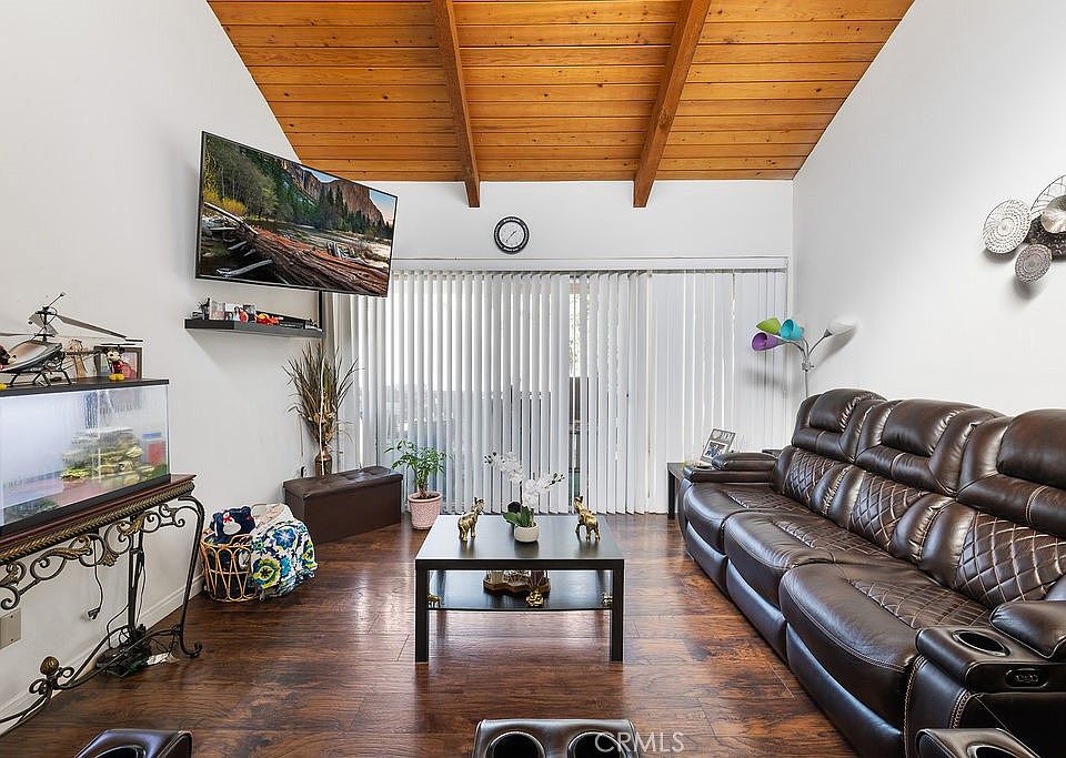 Welcome to this charming 2-bedroom, 1-bathroom condo offering 829 sq. ft. of comfortable living in the heart of Canoga Park. The home features a light-filled living room with striking wood beam ceilings, creating warmth and character. The layout includes a spacious primary suite, complemented by central A/C and heating for year-round comfort. The community offers fantastic amenities including a sparkling pool, relaxing jacuzzi, recreation room, and convenient on-site laundry facilities. Ideally located just minutes from the Topanga Mall, The Village, Costco and plenty of dining and entertainment options, this home offers the perfect blend of comfort and convenience at an incredible value.