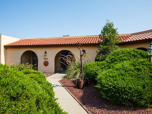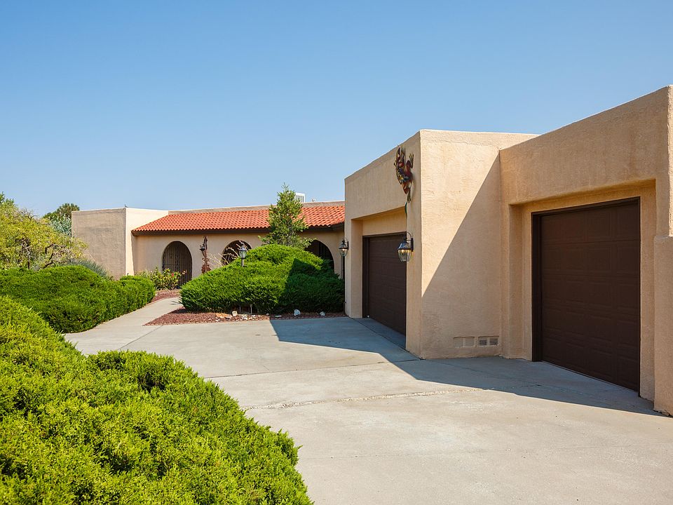 Take a look at this great single story home in one of Albuquerque's most convenient mid town locations. The views of the Sandia Mountains are incredible from this great home! Upon entering, you will be greeted by a huge great room with a beautiful stone fireplace, stained concrete floors, and beautiful teak beamed ceilings. There are 4 large bedrooms, 2 full baths, and one half bath, a formal dining room, and a large kitchen. The master suite is huge and features a living/sitting area and a large bedroom with fabulous mountain views. Brand new carpet throughout all the bedrooms. The backyard is huge and is fully landscaped. Enjoy the 3 car oversized garage and the circular driveway which offers lots of parking. This great home won't last!
