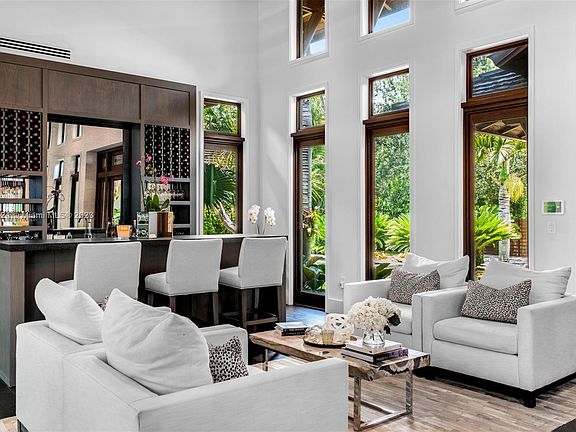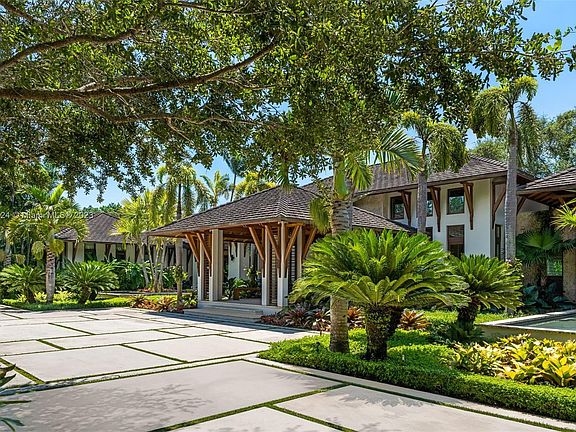 This magnificent 7,685 SF gated residence on 35,719 SF of lush, landscaped grounds was designed in 2015 by renowned architect Cesar Molina of CMA Design Studio. Capturing the allure of tropical Bali modern architecture, the use of elegant Cumaru wood and Native Oolite stone infuses the home with a natural and inviting ambiance. Every detail was meticulously attended to when customizing this retreat-style home, incorporating the finest designer finishes and modern conveniences. The home has 16-ft ceilings, 5 bedrooms, 6.5 bathrooms, a tremendous chef's kitchen with luxury appliances, and sprawling indoor/outdoor entertainment areas. Includes a Control4 security system, covered summer kitchen, saltwater pool, captivating water features, putting green, and a full-house generator.