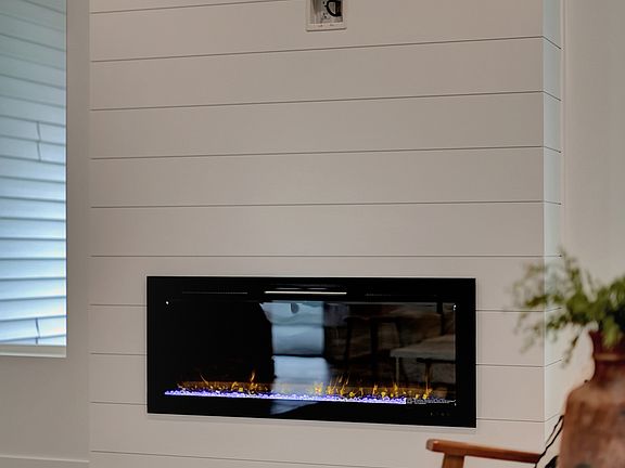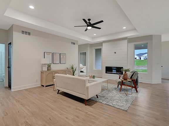 inviting living room with a cozy fireplace, ideal for relaxing with family and friends. The finished basement adds even more living space,