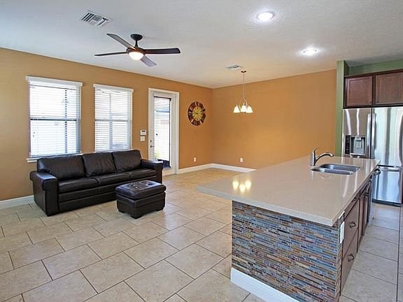 End Unit Townhouse! Lots of Natural Light! Master Bedroom 1st Floor! This Townhouse is just a few years old; it is fresh, clean and loaded with upgrades! Kitchen features: huge refrigerator, tall upgraded cabinets with hardware, stainless steel appliances, under the cabinet lighting, large granite top island and recessed lighting. The Townhouse has tall ceiling heights on the 1st and 2nd floor, 8ft tall doors on 1st floor, open loft 2nd floor, built in closets, 18 in tile flooring, hardwood flooring, upgrade ceiling fans, decorative tile, CAT 5 wiring, washer + dryer. Bedrooms 3+4 was combined to create a theater room, which is a great space that can be used as a large bedroom or can be converted back to two bedrooms. Great outdoor space: covered screened lanai, private fenced brick paver courtyard with overhead coverage to the garage, gutters all around the house, a garage loaded with built in cabinets, and painted floor. Carrington has a community pool and is ideally located for schools, shopping, dining, and area attractions.