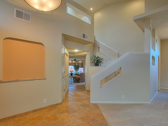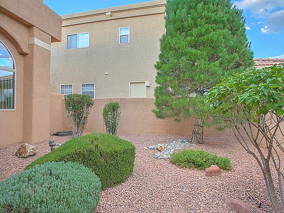 Gorgeous home located in the highly sought after Vineyard Estates subdivision. Almost 2700 sqft of EXTREMELY well cared home. As you enter the courtyard, you're greeted by lush vegetation that welcomes you into the home. Upon entertering, you walk into one of two very generous living areas. The kitchen boasts granite countertops, tons of cabinets for storage, a breakfast nook as well as breakfast bar, and lovely tile floors. Upstairs features the very large master w/balcony with views of the Sandias and the Sangre de Cristos. The master bath has dual sinks, separate tub and shower along with the walk-in closet. Newer stucco, Seamless gutters, NEW luxury vinyl throughout the downstairs portion of the home as well as new refrigerated air for those warm NM days. This is a must see home!
