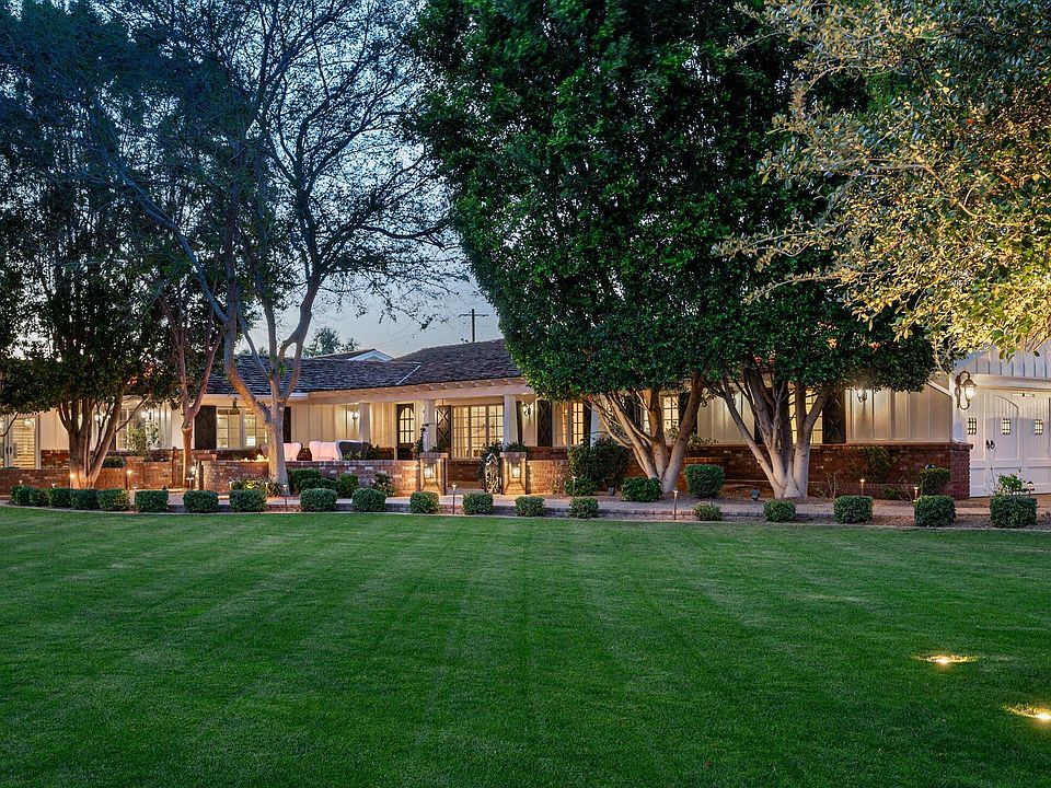 Welcome to Gary Road, a one-of-a-kind estate that seamlessly blends the timeless elegance of the Hamptons with the beauty of Arizona's landscape. Situated on a lushly designed one-acre lot in the highly coveted Shea-Cactus Corridor, this extraordinary property offers an unparalleled living experience. From the moment you arrive, the sense of privacy and sophistication is undeniable. The entire perimeter is hedged with mature ficus and vibrant sour orange trees, creating a dramatic yet serene retreat. A canopy of towering trees leads you to the gated courtyard and front patio, setting the stage for the refined charm that awaits inside. Upon entering, you are immediately captivated by the craftsmanship and attention to detail. Hardwood flooring, exquisite wainscoting, and architectural accents lend warmth and character throughout the home. Designed for both grand entertaining and intimate gatherings, the main living spaces include a formal living room, a moody yet inviting dining room, and an oversized family room that seamlessly connects to the breakfast nook and chef's kitchen. The west wing of the residence is thoughtfully designed to provide both comfort and functionality, featuring a luxurious primary suite with serene garden views, rich wood detailing, and soft textured wallpaper that enhances the sense of retreat. Adjacent to the suite, a spacious executive office offers inspiring views of the backyard. This wing also includes two en-suite bedrooms, an additional guest bedroom, a stylish hall bathroom, and a versatile secondary family room that can serve as a den, playroom, or media space.
