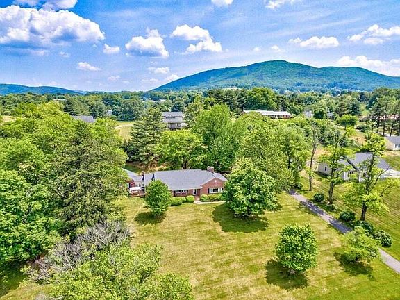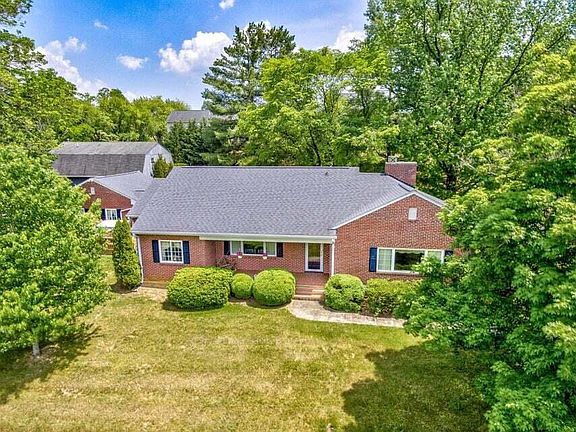 Step into timeless quality and character with this beautifully maintained 1950's brick home, nestled on a 1.64-acre lot with mature landscaping and glimpses of mountain views. This rare gem has been built to last with thoughtful craftsmanship and features original hardwood floors, rich gum woodwork, lighted closets and many charming details throughout. As you enter the front door, you're greeted by an inviting foyer flanked by a formal living room with a gas log fireplace on one side and a formal dining room on the other that leads to the large, eat in kitchen. Additionally, you'll find 3 spacious bedrooms, 2 full baths, anoversized laundry room, access to he deck and the dedicated home office through a hallway with lots of windows, allowing for natural light while maintaining separation between the spaces and a cozy den. An unfinished basement is awaiting your vision and the attached garage adds everyday convenience. Out back, the oversized detached garage can house 3 additional cars-ideal for the car enthusiast and offers a utility bathroom. Above the garage is a partially finished guest suite with a small kitchenette and bathroom - just waiting for your finishing touches.