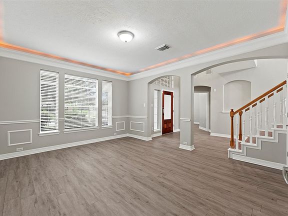 Welcome to the incredible property located in highly sought after Fall Creek. Conveniently located near the Beltway and the golf course, this property has all the space you will ever need! From the all brick exterior that will reduce upkeep costs, to the remote driveway gate, offering extra safety, this property has it all! The interior boasts soaring ceilings in the living room with 2 ways to access the staircase (entry and kitchen) for convenience. There is a home office, media room, game room, bonus room, and more. You really need to walk this property to fully appreciated it! The primary suite offers a "bonus room: attached to it with its own personal fireplace. The primary bath has a whole vanity area, as well as a jetted garden tub and large walk in shower. With hard flooring throughout the whole house, you wont need to worry about replacing carpet. This home is move in ready and priced to sell! Schedule your showing today.