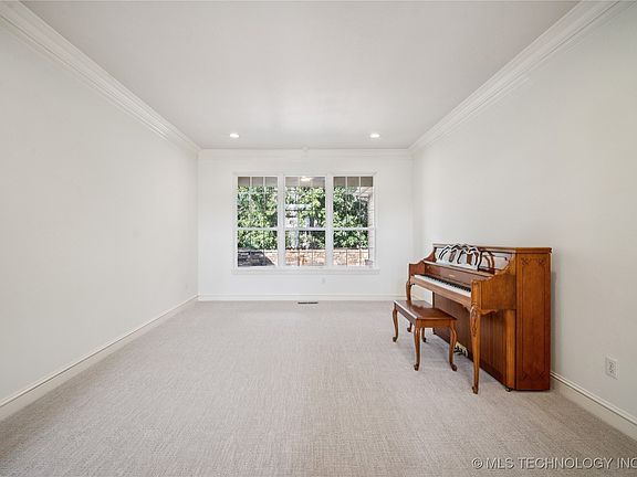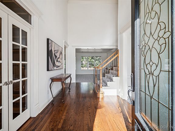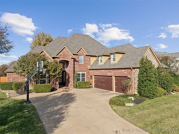 Legacy Park entertainer’s dream in Jenks Schools with a brand-new roof plus all new interior paint, carpet, light fixtures, and most mirrors replaced in 2025. Sitting on a quiet corner lot near 101st & Memorial, this home is designed for comfort, function, and effortless indoor–outdoor living. The layout includes a private office/library with built-ins, formal dining/living, an additional flex space off the entry, and a double-sided staircase from both the foyer and family room. The kitchen and dining nook open to the great room with fireplace and detailed crown molding. The primary suite is on the main level with dual sinks, dual closets, and direct access to the backyard retreat. Outside features a pool with waterfall, hot tub, and a dog run on the west side. Upstairs has three bedrooms with generous closets, two full baths (one ensuite), and a large game room with closet. Additional highlights: Top-tier 2020 high-efficiency Trane HVAC, utility room with sink and storage, 3-car side-entry garage, in-ground storm shelter in primary closet, sprinkler system, and excellent neighborhood amenities including a park, walking trails, Flock security, and community events. Outstanding HOA.