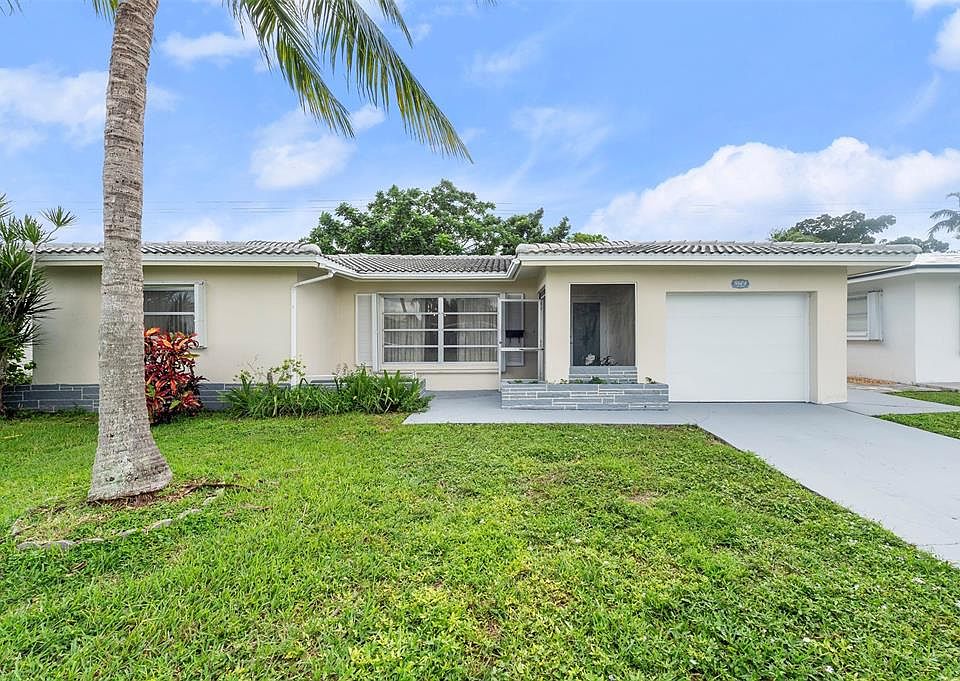Welcome to your tropical oasis! This charming 2-bedroom, 2-bath home offers comfort, space, and peace of mind with a new impact door, a newer roof (2023), and a 2023 water heater and 2023 A/C. The new garage doors and accordion shutters add extra security and value. Inside, you’ll find oversized bedrooms and a spacious enclosed Florida room—perfect as a sunroom, office, or easily converted third bedroom. Enjoy indoor-outdoor living in your large backyard surrounded by lush tropical fruit trees, including mango, soursop, ackee, and June plum—a true paradise for nature lovers. Don’t miss this beautifully maintained home with modern updates and endless potential!