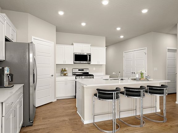 Highly sought after CALI plan, open, spacious and stunning, most notable by its 4 bedrooms and 2 full bathrooms in ONE story living! Modern design rancher for today's lifestyle. Features also include 9 ft ceilings, dining area, wide plank laminate floors, great room open to the kitchen. Quartz counters, stainless appliances. Large primary, huge bath with walk-in closet. Great community, close to all conveniences and 12 mins to downtown. DHI Mortgage incentive is available on all homes closing on or before 10/31/23 Home Of The Week!!! Home includes Fridge, Washer and Dryer, Blinds, Rear Yard Fencing, and Garage Door Opener.