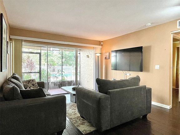 Ceiling fansNew dryerNew refrigeratorWood floorsScreened-in patioNew over-range microwaveWalk-in closet