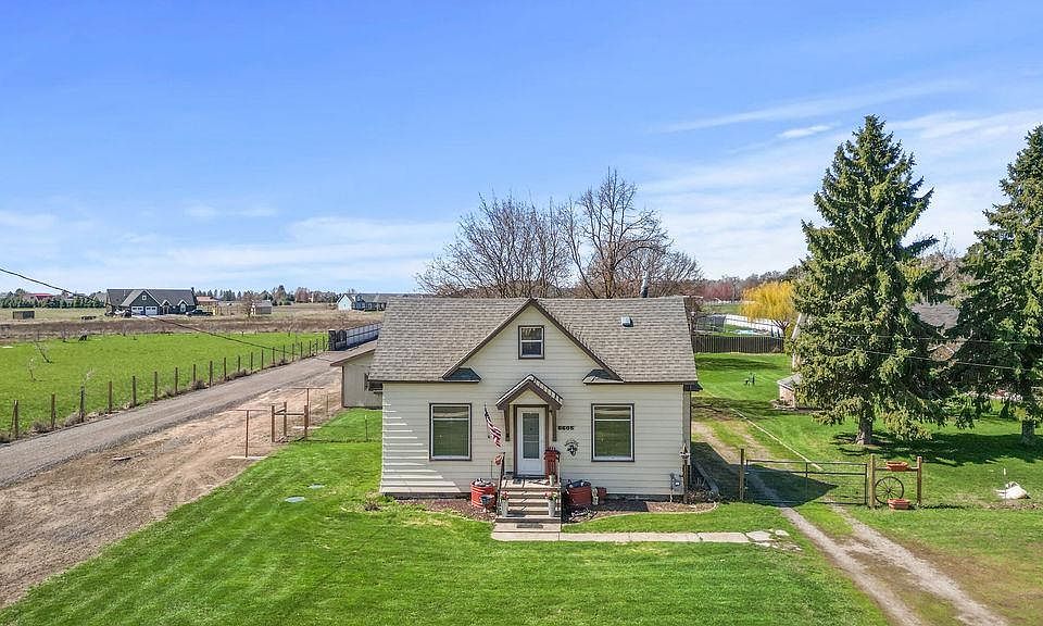 Early 1900's Farmhouse, a fine example of Wabi Sabi for those who gravitate toward authentic simplicity. Truly a piece of history, as one of the first homesteads on 5 mile with vintage outbuilding. High producing well, and newer septic are a few of the attributes, not to mentioned newer roof, wiring and windows have been updated throughout the years. Truly humble in nature, this 3 bedroom 1 bathroom home is adequate yet comfortable with a spacious county kitchen, a dining room, living room with gas stove and mud room, pantry and laundry room. The three car garage, fenced yard, garden area and mature trees are rare to find at this price point. OPEN HOUSE 9-11 on Saturday 4/13
