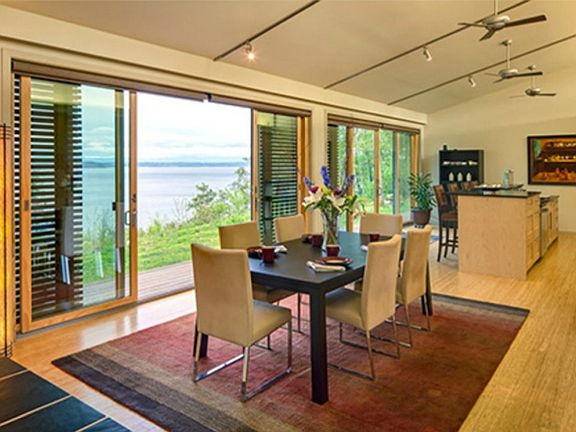 Fantastic opportunity to own the first Glide House! Award winning Blu Homes design with many green elements, including radiant floor heating, recycled structural steel, high R-value wall and floor insulation, low VOC paints, sustainable Paperstone counters & bamboo flooring. Walls of glass doors open to views and wrap-around deck for the perfect combination of indoor-outdoor living in the great room and luxurious master; open office area and separate "guest pod" for entertaining ease.