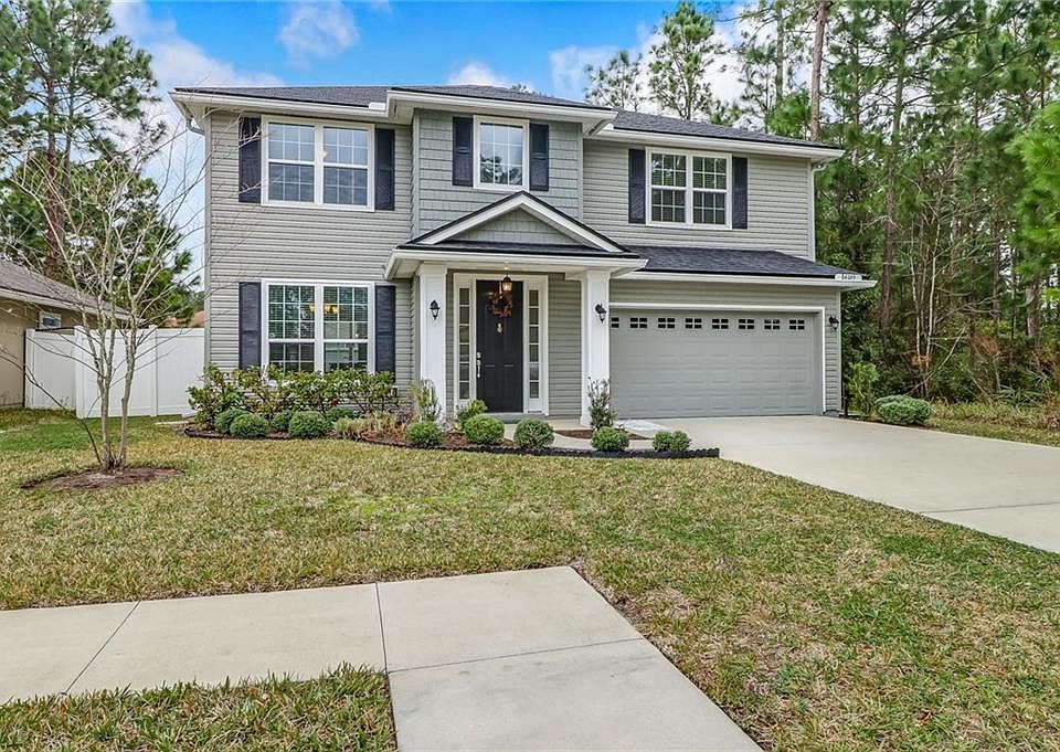 This Newer 4BR/2BA with open concept kitchen/great room is perfect for your family! Situated on an oversized cul-de-sac lot, this home is private while still convenient to Yulee, Fernandina Beach and only minutes from I95. Living Space downstairs and all bedrooms upstairs. Tall doorways and ceilings and lots of natural lights make this home feel HUGE! Flex space can easily be used as a formal dining, play room, or study. Large Eat-in Kitchen features custom can lighting, 12x12 tile, solid surface counters, large pantry, SS appliances, 42" cabinets with molding, cutom backsplash and a large island with a sink. Double vanities and tile in both bathrooms, as well as separate water closets for privacy. Owners suite boasts tray ceiling and large closet with En suite upgraded with garden tub and over-sized walk-in tiled shower. Home Security System, Irrigation System, Fully Fenced Back Yard with Separate fenced area for pets. Community playground, pool, walking trails LOW HOA & NO CDD