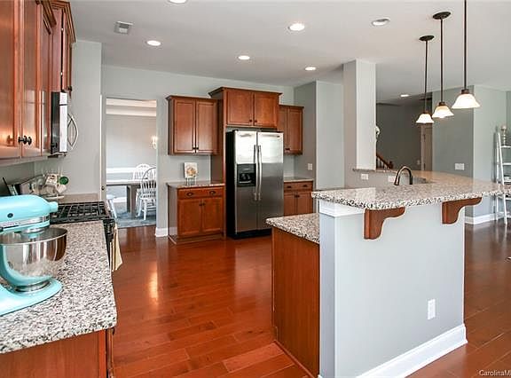 The BIGGEST floorplan available in Ardrey Woods! Enter this airy 2-story home through the cozy covered front porch & find a meticulous open interior painted in neutral colors - showcasing 6 bedrooms, 4.5 baths + a loft area! A full guest bedroom suite w/bath is complete on the 1st floor as well as a large master bdrm w/sitting room upstairs + a Jr master bed/bath (or this can be used as a bonus room) also upstairs, both with oversized walk-in closets. Laundry room located on 2nd level with 3-year old LG washer & dryer set included! Main level features include family room with gas fireplace & windows throughout, hardwood floors, kitchen with island/bar seating, granite countertops, stainless appliances, dining room, built-in computer niche & bump out breakfast room with door to rear patio. Add in a PREMIUM corner lot with large fenced-in yard to boot! Playset negotiable. Security system included. Neighborhood pool, playground, walking trails & excellent Ballantyne/Blakeney location!