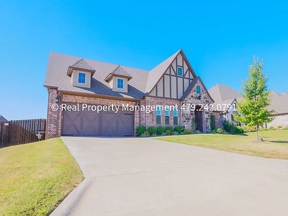 Introducing a stunning 4 bedroom, 3 bathroom executive home in the Stoneshire Subdivision, located near Lake Torraine in Fort Smith, AR (Chaffee Crossing Area). This spacious home boasts a range of amenities including a refrigerator, garbage disposal, dishwasher, microwave, gas cook top, and wall oven making cooking a breeze. Enjoy cozy evenings in the living room by the gas fireplace or entertain guests on the covered back patio with a privacy fenced yard with a built in outdoor gas fireplace! The central heating & air system ensures year-round comfort. Stunning wood beam accent ceilings in the dining room and master bathroom. Extra large closets in every bedroom, and a large pantry, this home offers plenty of storage space. Split floor plan downstairs. Master bedroom on one side, 2 bedrooms and a hall bath (tub/shower combo) on the other side. Master bathroom has a jacuzzi tub and a walk in shower. Upstairs has one bedroom with private bathroom that has a step in shower. The 2 car oversized garage provides ample parking and storage space. Don't miss out on the opportunity to make this beautiful house your new home. Tenant pays water, electric, and gas. Tenant is responsible for all lawn care/landscaping. Pet friendly (2 pet limit. Some dog breeds are restricted.) NO HUD.
