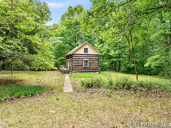 FINAL AND BEST OFFERS DUE BY 2PM on MON 6/16. Own a piece of Newaygo's rich logging history in this 1850's hand-hewn virgin white pine log cabin. One vacant 10.2 acre parcel plus 11.4 acre parcel with cabin together offer more than 22 acres PLUS 600 feet of private frontage on the Muskegon River. The character of the cabin is astounding, with original axe cut timbers and siding painstakingly removed then rebuilt on concrete and steel beam foundation in 1992. Well, septic systems and electric service added by 1998. Electric baseboard heating and wood stove. Walkout basement has a full bath with separate sink, toilet, and shower rooms. Easement on east side of property per survey and sellers. Sold TURN KEY! Agent must accompany buyers on property at all times. The property and river frontage are stunning - offering endless recreation from boating and fishing to quiet rest. Good cell service and 5 min to Newaygo town, boat launch and Riverfront Park. Roof 7 yrs old. Anderson Windows.