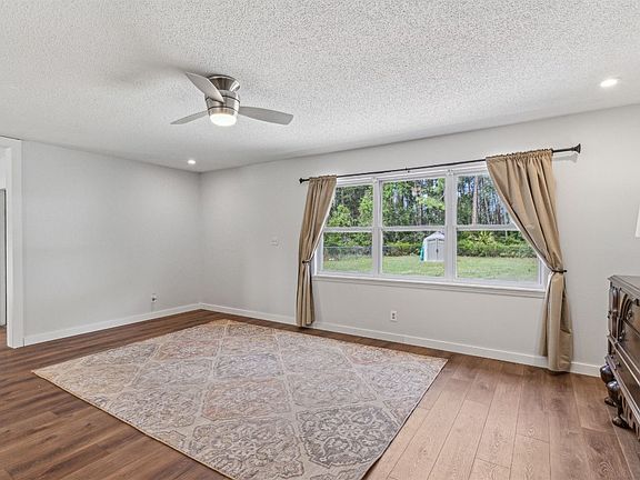 Charming ranch-style home in the heart of Yulee on a spacious .69-acre fully fenced lot! This well loved and partially remodeled home features luxury vinyl plank and tile flooring, a large family room with abundant natural light, built-in TV console, and formal dining room. Don't miss the vintage shelving that conceals a storage closet-a must see! The owner's suite offers a solid wood barn closet door, custom wood shelving, and newly tiled shower in owner's bathroom.