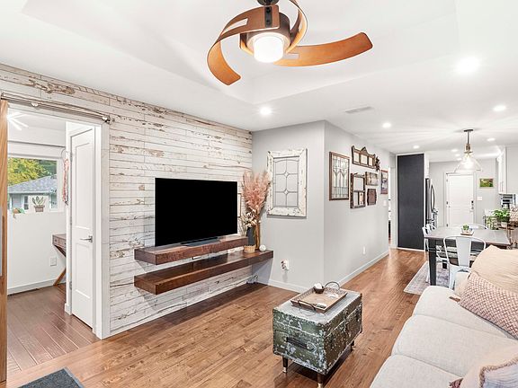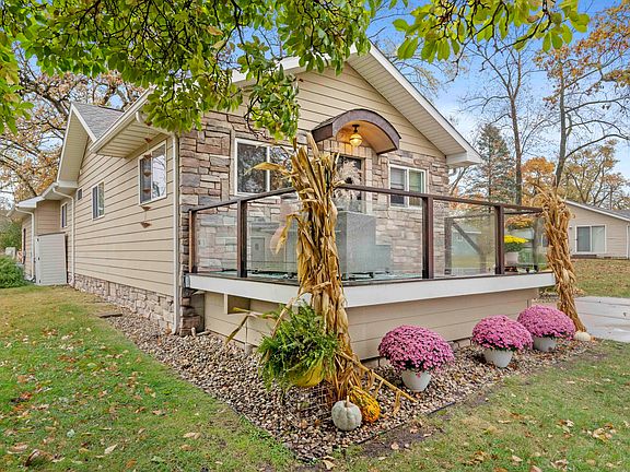 This Charming Cozy Bungalow with Lake Rights is a must see! If you think the pictures are beautiful wait till you walk through the front door you will immediately feel right at home! The front porch deck is made of Brazilian Walnut and has glass railings with LED lighting underneath them as well as hidden storage under deck. All upgrades were done with high-end materials. Open concept living area with an accent wall and floating shelves, hand-scraped hardwood flooring, tray celling, custom barn door. Kitchen has custom soft close cabinets, quartz counter tops, and only 2 year old SS appliances. Bathroom has heated porcelain title floor with glass tiled spa tub/shower. Custom walk-in closets and tray ceilings in 2 of the bedrooms. Laundry area has a pull out pantry, drawer with built in ironing board, and a tankless hot water heater! 2 car heated garage has been converted to living space for entertaining family and friends and extra storage, also has AC for those warmer days. Schedule a showing and make this your home sweet home before the holidays!