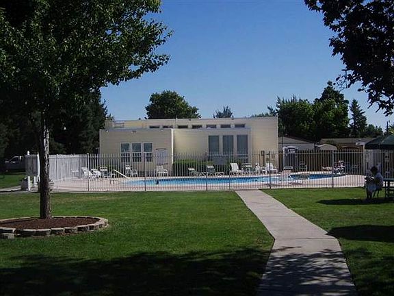 Location! Beautiful cared-for manufactured home, across from pool/rec bldg. Minutes to Boise mall & freeway. Perfect rental or owner occupied. Could be moved to provide for ranch tenant or fill recreation need. Beautiful pool w/park, hot tub, bldg w/park rec rm. Separate club house 1 mile away for special events. Split bdrm design/master suite w/2 closets, separate shower/soaker tub. Built in hutch, breakfast bar, great rm. Storage shed & fenced yd. Rental lot $434/mo. Owner financing avail - CLA for terms.