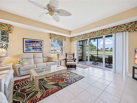 Experience luxury living in this meticulously maintained, fully turnkey-furnished condominium nestled in the exclusive, double-gated, pet-friendly Champions community within Lely Resort. This ground-floor end unit offers unparalleled convenience with amenities just steps away, including the Champions pool and clubhouse, the prestigious Player's Club & Spa, Classics Country Club and the Mustang Island and Flamingo golf courses. This spacious and open two-bedroom plus den with dining room, two-bath condominium boasts breathtaking private views of the lake and golf course and comfortably sleeps 6. The gourmet kitchen is a chef’s dream, equipped with modern stainless steel appliances, granite countertops, a walk-in pantry, a center island, breakfast table, breakfast bar and abundant cabinet space. The expansive primary suite offers two closets, a separate shower, a large soaking tub and dual sinks. Impact-resistant windows and doors, as well as new roofs in 2019, ensure peace of mind for years to come. Relax and unwind in the spacious screened-in lanai, perfect for enjoying tranquil sunset views. Optional membership to the renowned Player's Club & Spa is immediately available, providing access to an array of social and sporting activities such as tennis, pickleball, a fitness center and resort-style pools. Lely Resort is also home to three championship 18-hole golf courses, offering an unmatched golfing experience. Embrace the lifestyle you’ve always dreamed of in this exceptional condominium. Don’t miss the opportunity to make it yours!
