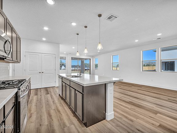 Brand new 3 bed + den, 2 bath home on a rare 35,000+ sq ft lot—equestrian and chicken friendly! This modern country gem features 2x6 full shear exterior walls, ample space for storage, and 10ft gate access to the backyard. You'll find upgraded LVP flooring, upgraded quartz countertops, espresso brown cabinets, and a stunning primary bath with soaking tub. Enjoy seamless indoor-outdoor living with a 9-ft stacking slider leading to a covered patio. Hard-to-find new construction this close to town—rural living with great access to amenities!