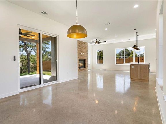 Welcome to 8609 Nina Lane, a modern farmhouse where contemporary design meets the serenity of the Hill Country. This brand-new 4-bedroom, 3.5-bath, 3,093 sq. ft. home offers refined craftsmanship, natural finishes, and sweeping views. The open-concept living area is anchored by a striking floor-to-ceiling gas fireplace, framed by walls of windows that flood the space with light. The chef’s kitchen—with quartz countertops, custom cabinetry, and an oversized island and large walk in pantry—flows seamlessly into dining and living areas, creating the perfect setting for gathering with family and friends. Polished concrete floors downstairs provide a sleek, durable foundation, while engineered hardwood floors upstairs bring warmth and character. The primary suite offers a peaceful retreat, views for days, a spa inspired bath featuring dual vanities, soaking tub, and an extra large walk-in shower. A highlight of this home is the downstairs Junior Suite with its own private patio, walk-in closet with stackable washer/dryer hookup, and a private ensuite bathroom—ideal for multigenerational living or offering guests comfort and privacy. Upstairs, a versatile loft adds room for a media area, playroom, or office, along with two guest bedrooms with a shared bathroom and a large walk in Laundry Room with a view upstairs side by side washer dryer hookup.! Inspire Vinyl – White with Black laminate exterior LowE Argon filled Single hung, sash style, easy open for exterior cleaning from inside the home Outdoors, enjoy canyon sunset views from the back patio and partial Lake Travis views from the front, capturing the very best of Jonestown living. Designer finishes and organic modern details tie the home together, offering both sophistication and comfort. Just minutes from Lake Travis, hiking trails, and the conveniences of Cedar Park and Austin, this home perfectly blends relaxation and accessibility.