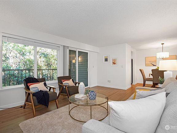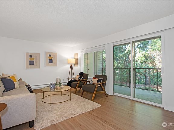 Tucked away in sought-after Oakbrook is this gem nestled along Chambers Creek Canyon. Enter this beautifully renovated 2-bedroom 2 bath on to new hardwood flooring winding throughout kitchen, living and dining room as light floods in from large window slider leading to covered deck overlooking green belt space. Large primary bedroom with ensuite bath, plus additional bedroom and bath. Updated Kitchen, New Carpet in bedrooms, New Paint throughout, Updated Bathrooms, New Vanities, New electrical panel etc. Enjoy all The Bluffs amenities, club house, tennis court, swimming pool, fitness center, walking trails and car washing station! Maintenance-free living at its best! Steps from Oakbrook Golf Course and delicious Adriatic Grill. Must see!