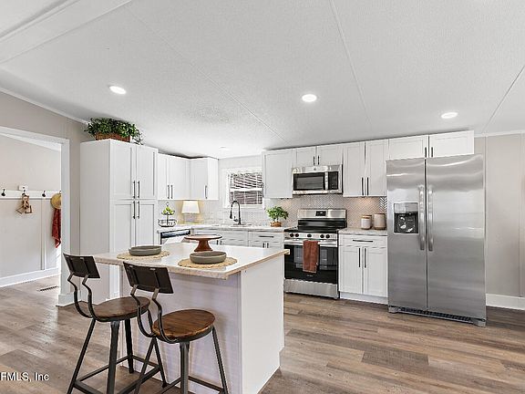 Welcome to this charming mobile home nestled in the serene setting of Yulee, FL. This home is 3 bedroom/ 2 bath with office that can easily be considered a 4th bedroom. New roof, septic system with tank/drain field and AC are all recently installed!! All cabinets updated throughout with stainless steel appliances and kitchen island. New water heater, floors, tile showers and more! Enjoy the over 1 acre lot with a back and front deck for entertaining. Recent appraisal and priced to sell fast!!
