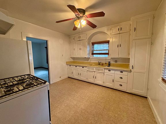 This super cute 1.5-story home offers 3 bedroom, 1 bath, and a fenced yard with no backyard neighbors, and a large additional side yard. This home has great curb appeal and is in a quiet location, at the end of a street, across from Tank park. The home is in good shape with lots of updates, but does need some cosmetic TLC. There is a large oversized garage for extra storage or future workshop! Refrigerator, oven, washer and dryer included. This home has been pre-inspected. Sold "as is" by POA.