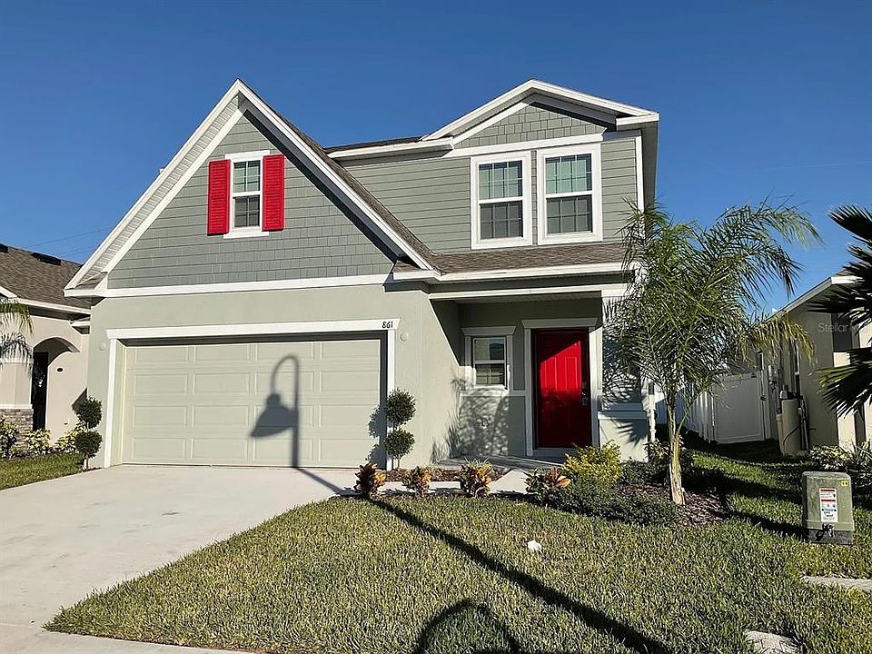 Welcome to this stunning 2021-built 4-bedroom, 2.5-bath residence located at 861 Bocavista Ct in Davenport's vibrant 33896 community. Boasting approximately 1,918 sq ft of living space, this two-story home features a thoughtful layout with the main living areas on the ground floor and four spacious bedrooms upstairs. Inside, you'll find upgraded tile flooring downstairs, carpeting on the upper level, modern lighting fixtures, and a built-in versatile space within the master suite, perfect for a home office or sitting room. The open floor plan seamlessly connects the kitchen, dining, and living areas, while the private backyard provides an ideal setting for outdoor relaxation. Enjoy the convenience of a 2-car garage and easy access to shopping, dining, major roadways, and everyday amenities. Don't miss this opportunity to own a beautifully maintained home in one of Davenport's most desirable communities.
