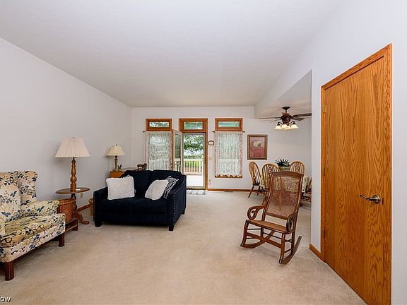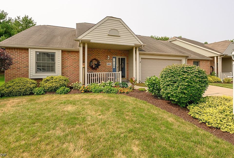 This lovely 2 bedroom, 2 full-bath ranch is located in an impressive 55+ community! The open floor plan and large kitchen are sure to please. The kitchen offers plenty of cabinet space, a nice breakfast bar, range, refrigerator, and vinyl flooring. The Inviting living room features beautiful transom windows and access to the exterior deck. Both bedrooms are spacious and include walk-in closets. The Master Bedroom also includes an en-suite bath. Many Handicap features are included, such as extra wide doorways, handrails, and a concrete ramp in the 2-car attached garage. This property is nice and clean and has been very well maintained. There is an abundance of storage space and a fantastic unfinished basement. This property is an end unit and is located next to the common area (green space). HOA is The Villas At Autumn Meadow IV and the property maintenance company is Grace Properties. Homestead tax reduction has been added back into property taxes as well as Muskingum Watershed - $3.0