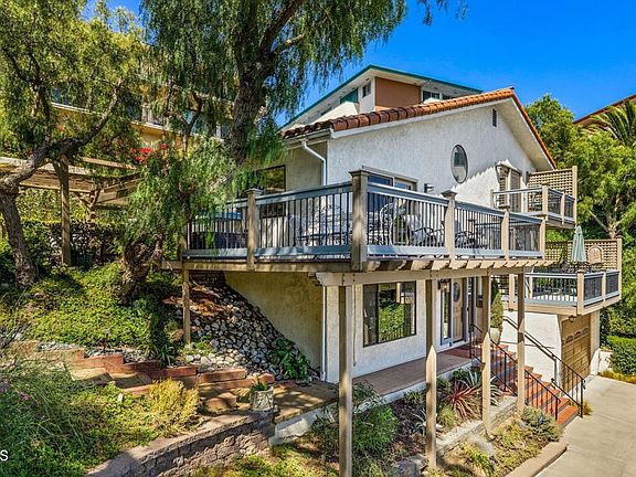 We welcome you home and offer you peace, tranquility and spectacular sweeping views for as far as the eye can see. Unique views from every level and deck; views of the Pacific Ocean, Ventura Pier, Channel Islands, Pierpont Bay, and on a clear day, the Anacapa Island Arch. This custom quality Mark Oliver built home has been lovingly cared for and fully enjoyed over the years. The property and many living spaces, indoors and out, really draws you in and makes you feel like you're on top of the world. The wonderful world class mild Mediterranean Climate allows for year round outdoor entertaining and coastal enjoyment. From the moment you enter this home you will know this property is special. Featuring a well thought out designer inspired comfortable interior with wonderful views from every room, indoor outdoor living with windowed doors drawing you out from the living room, kitchen and master bedroom. A large private deck and tumbled paver patio with mature Pepper shade trees off the dining room and kitchen lends itself to Al Fresco dining year round. Many large windows and designer inspired finishes provide a natural, warm, inviting sun filled interior. Featuring Curly Maple wood floors, wood tongue and groove ceilings, vaulted ceilings in kitchen and dining areas, wood doors and casings, living room fireplace, travertine stone entry flooring, large circular entry window, open, airy kitchen with furniture grade cabinets, stone counter tops large bay window, stainless steel appliances, dining room off the kitchen with Trex decking that wraps around to the West patio and rear yard allows for indoor outdoor entertaining with ease. You can watch the ocean and sun rise from your private master bedroom with remodeled modern bath and sip your morning coffee from the private deck while you take in the view of the Ventura Pier and watch the sun set while sipping wine in the living room. Second living room with full wet bar and retro style full bath, two utility rooms below grade would be perfect for wine cellar, kids or workout/ Yoga room, remodeled guest baths. Oversized private driveway for potential RV or boat parking and just a short distance to Historic Downtown Ventura or commute to Los Angeles or Santa Barbara.
