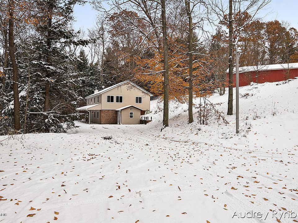 Newly renovated home is nestled on nearly 10.5 acres of woods and is a nature lovers paradise filled with birds, deer, turkey and even fox! Setting offers privacy, with a long winding driveway, leading to the covered porch inviting you to stay awhile. Enter the home and notice warm wood details, custom kitchen, granite countertops finished off with a subway tile backsplash! The open concept is perfect for holiday parties with friends gathered around the woodstove ! Upstairs offers master suite with sitting area, adiitional bedrooms and rec room. Huge 30x58 polebarn is heated, insulated with 220 power. Only 20 minutes to Grand Rapids on a paved road! Located on the county line, Grant Schools Newaygo Promise Zone Eligible or Kent City school of choice!