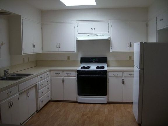 Large triplex, with the largest apartment available of 1150 square feet, Nice functional layout for this 2 Bedroom/ 1 Bath Apartment, Hardwood floors in kitchen, dining room, master bedroom, LARGE country kitchen with 36 cabinets, Newer gas stove, Newer refrigerator, Bathroom with newer medicine cabinet and exhaust fan, Closets throughout, 3 ceiling fans, 2 skylights with magnificent day natural lighting, Private rear patio and patio cover, Large fenced side yard and nice shared front porch, Off street parking for one vehicle, Storage closet, Professionally operated coin laundry on site, Sewer and trash included. Renter responsible for portion of water, gas, electric, cable TV, Sorry, No pets allowed. Sorry, no smoking allowed. This is a non-smoking property. For serious interests, please text or email to schedule a showing for this Saturday (5/7) afternoon. Tenant responsible for gas and electric.