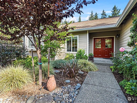 Stunning Craftsman Rambler home featuring 2 landscaped patios with automated irrigation, including drip zones for water conservation. Interior highlights include strand bamboo flooring, skylights, and custom Craftsman woodwork throughout. The kitchen boasts quartz countertops, stainless steel appliances, and a custom butcher-block island. The primary suite features a custom tile shower and granite countertops. The three-car garage is fully insulated with shop-ready amenities. New roof (2019), heat pump (2023), and recent appliance updates. A perfect blend of modern convenience and timeless craftsmanship.
