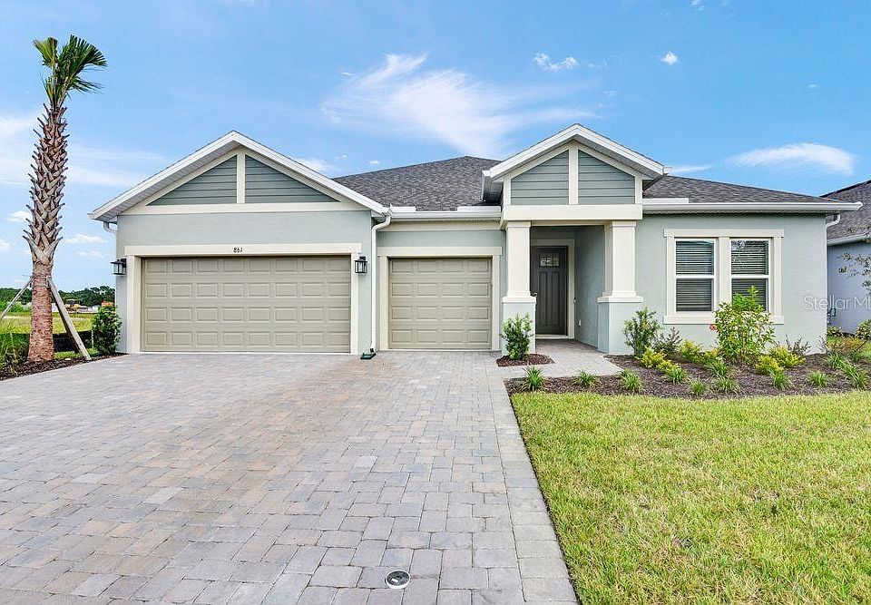 New Construction - Ready Now! Built by Taylor Morrison, America's Most Trusted Homebuilder. Welcome to the Java at 861 Junonia Boulevard in Ardisia Park. The Java is a thoughtfully designed home centered around a spacious great room, visible from the foyer as you enter through the front porch. With 2,721 sq. ft., it offers 4 bedrooms, 3.5 baths, and a 3-car garage—balancing shared living with private retreats. At the front, two bedrooms share a full bath, while a dedicated study off the main hall is ideal for work or quiet time. The expansive gathering room flows into a well-appointed kitchen with a large island, ample counter space, and a walk-in corner pantry—perfect for entertaining. The luxurious primary suite features a spa-like bath with dual vanities, soaking tub, walk-in shower, and large closet. Additional Highlights Include: tray ceiling package, gourmet kitchen, study in place of flex, and a bathtub in the primary bath. MLS#O6303791