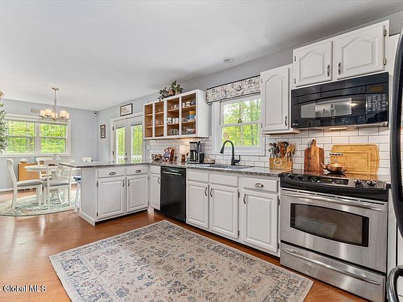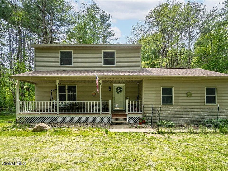 Open House Sunday 6/30 1-3PM! Charming colonial set on a private 1.5-acres, just a short drive to downtown Saratoga! This updated 3-bedroom, 1.5-bath gem offers all the space & amenities you need. Welcoming front porch, perfect for enjoying a quiet morning coffee. Bright, spacious living room flows into open, updated kitchen with granite countertops & dining area. French doors off dining area lead to composite deck, ideal for relaxing in the wooded backyard. Bedrooms have ample closet space. Main bath with double vanity. New sump pump; hot water tank; furnace, water softener system & pressure tank; utility sink with reverse gravity pump; windows; garage door opener & updated electrical. Garden beds are ready for planting & chicken coop is included! Basement partially finished.