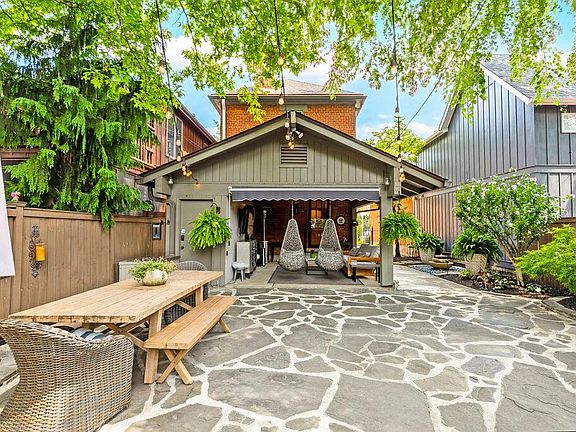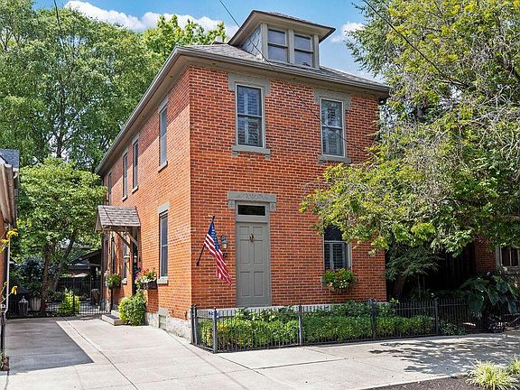 Stunning German Village brick home with backyard oasis! Bright and immaculate first floor complete with living room, updated kitchen open to dining/sitting room and half bath. Second floor boasts a large primary bedroom w/vaulted ceiling and a gorgeous fully renovated primary bathroom and laundry closet. Guest bedroom offers a Murphy bed for office and bedroom use and a full updated guest bath. Plantation Shutters throughout most of home and engineered wood floors on main level. The private/fenced back yard offers a tranquil setting with newer patio, awning and lush landscaping. Covered patio with large tv to enjoy game days outside. Plenty of storage in the dry basement. This home offers German Village living at its best! Close to dining, shopping and Shiller Park. See A2A remarks.