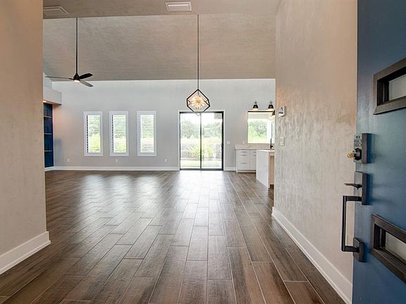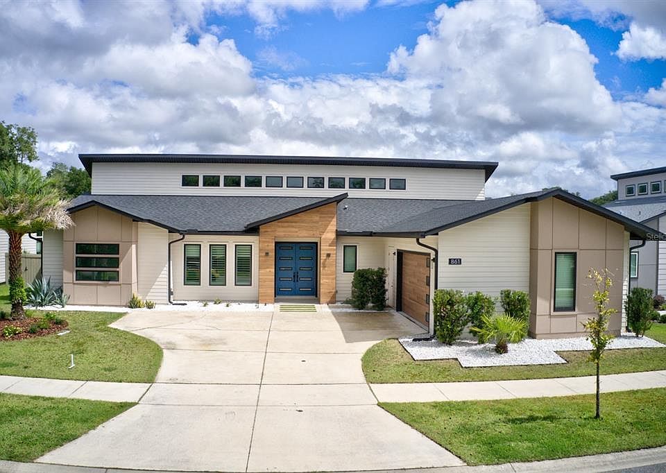 Stunning Contemporary 4BR/4BA Home with Bonus Room – Designed with Every Detail in Mind This 3,156 sq. ft. newly constructed residence offers a bright, open-concept layout built on a reinforced post-tension foundation for lasting durability. Thoughtful upgrades include plantation shutters, 8’ interior doors, and expansive windows that flood the home with natural light. Wood-look porcelain tile extends throughout the main living areas and study, complemented by custom designer lighting. The gourmet kitchen showcases sleek European-inspired cabinetry, quartz countertops with a dramatic waterfall island, farmhouse sink, stylish tile backsplash, and premium stainless steel appliances, including a gas cooktop with vented hood, built-in oven/microwave combo, and dishwasher. Striking pendant lights highlight the spacious center island—perfect for gathering and entertaining. The sunlit family room features a soaring vaulted ceiling and oversized sliding glass doors that open to a generous covered lanai, overlooking a beautifully landscaped, fully fenced, and irrigated backyard. The owner’s suite includes dual walk-in closets, a spa-inspired bath with quartz dual vanities, and a custom-tiled walk-in shower. Each of the three guest bedrooms offers its own walk-in closet and en suite bath. Energy-efficient features include Icynene spray foam insulation, low-E insulated vinyl windows, and a tankless water heater. Nestled in the sought-after Glorias Way community, this home is ideally located near Tioga Town Center and just minutes from Celebration Pointe’s shopping, dining, and entertainment.