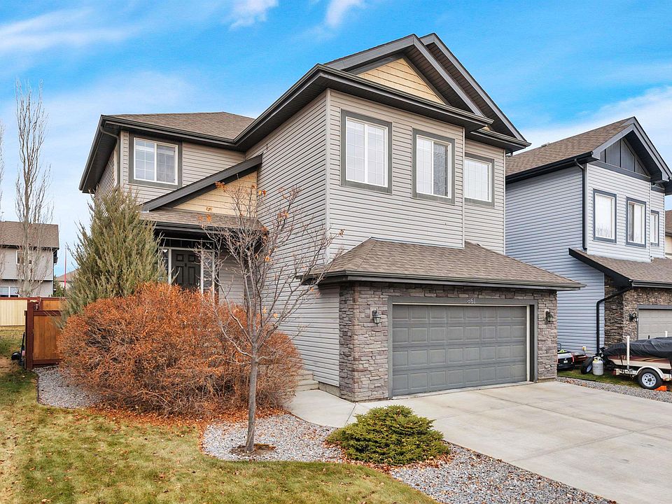 VA-VA-VA VOOM! Look at this big beauty! This 2,275 ft² 2-storey, AIR-CONDITIONED home has 4 bedrooms, 3.5 baths, HUGE bonus room, finished basement + double attached garage! Spacious living room has big sun-filled windows with GAS fireplace. The chef’s kitchen includes GORGEOUS black GRANITE countertops, beautiful dark cabinets, STAINLESS STEEL appliances, pantry + breakfast nook overlooking the WEST-FACING BACKYARD! Built-in speakers throughout! Upstairs you’ll find a HUUUGE bonus room, a dreamy primary bed with 5-pc ENSUITE including SOAKER TUB + WALK-IN CLOSET + 2 more beds and full bath. FULLY FINISHED BSMNT has a FAMILY/REC ROOM, 4th bed with 3-pc ensuite, and (shhhh …) a fun secret hidden space behind the bookshelf! Yard has LARGE DECK + GAS FIREPIT (no wood or mess)! Close to Father Leduc (K-8) school, Steps to parks, trails, pond, skating rink & minutes to Hwy 2A, QEII, EIA, Nisku, Costco, Outlet Mall, Amazon, and only 15 minutes to Edmonton! Incredible home, incredible location! So much to love!